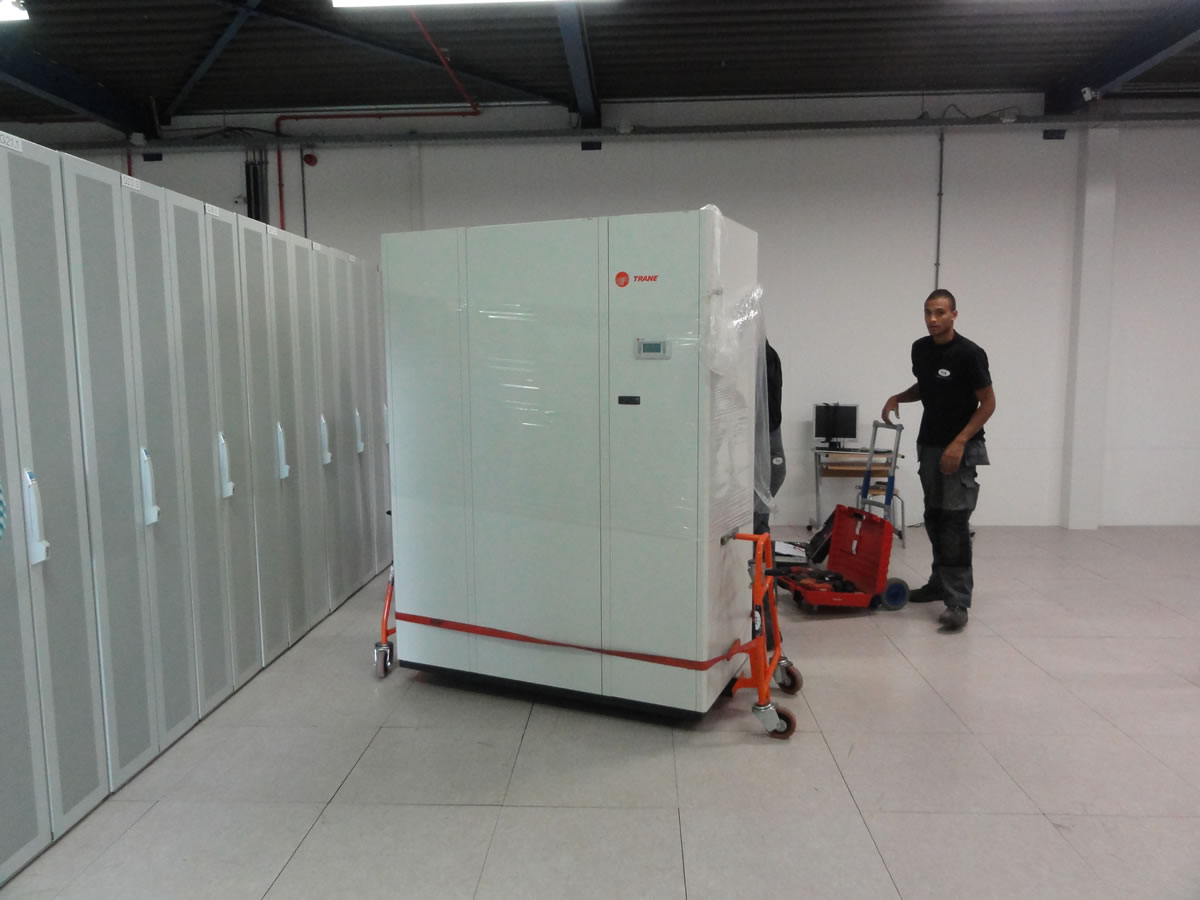 In mei constateerde we dat de temperaturen in het dc langzaam begonnen op te lopen. Het afdichten van de koude straat enkele dagen later leek voor een deel te werken, maar de servers bovenin de racks bleven toch 10 graden warmere lucht (30graden) te verdragen dan de servers die midden of onderin de racks hingen. Waarop volgde dat we een nieuwe airco bestelde. In verband met levertijden en planning heeft het even geduurd voordat de nieuwe unit stond.